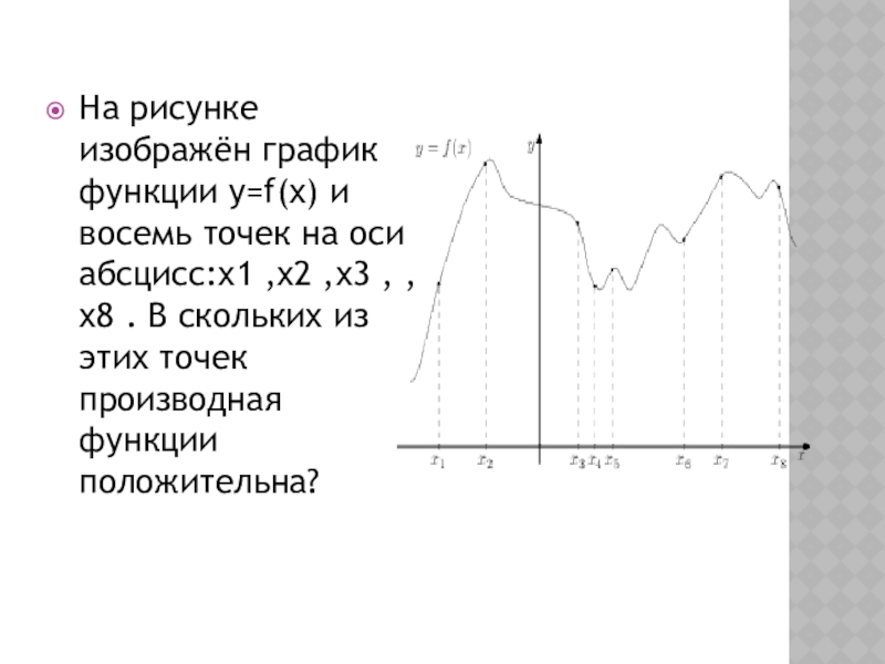 абсцисс:х1 ,х2 ,х3 , ,х8 . В скольких из этих точек производная функции положительна?