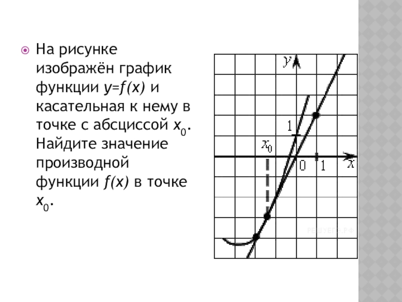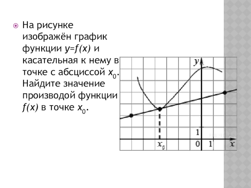 Слайд 4На рисунке изображён график функции y=f(x) и касательная к нему в