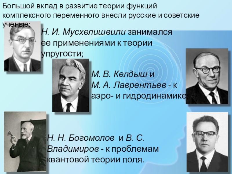 Большой вклад в развитие теории функций комплексного переменного внесли русские и советские ученые: