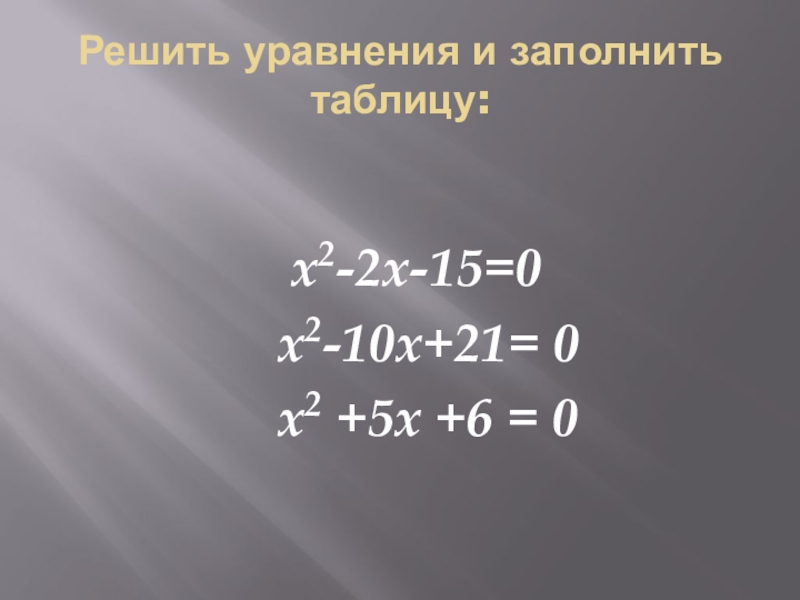 Слайд 6Решить уравнения и заполнить таблицу: