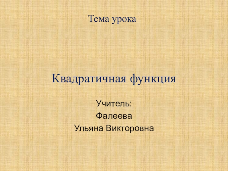 Тема урокаКвадратичная функцияУчитель: Фалеева Ульяна Викторовна