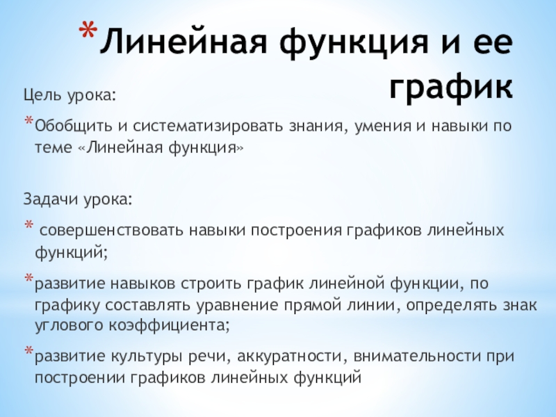Математической моделью ситуации является линейная функция у=15+4х, х Є [0:6],