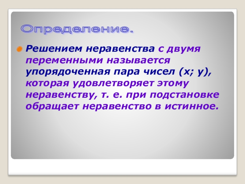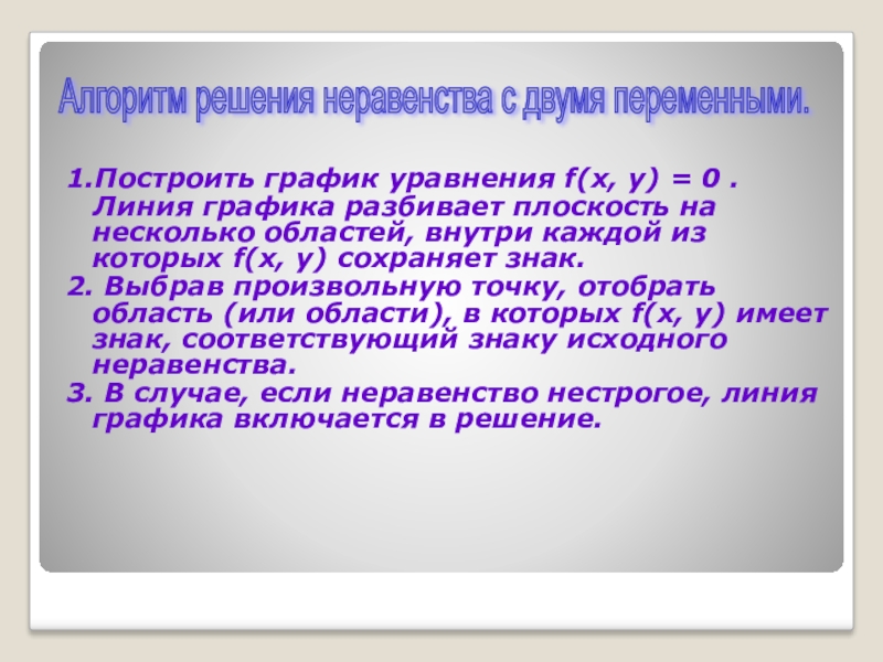 Все решения неравенства геометрически изображены точками одной из полуплоскостей.