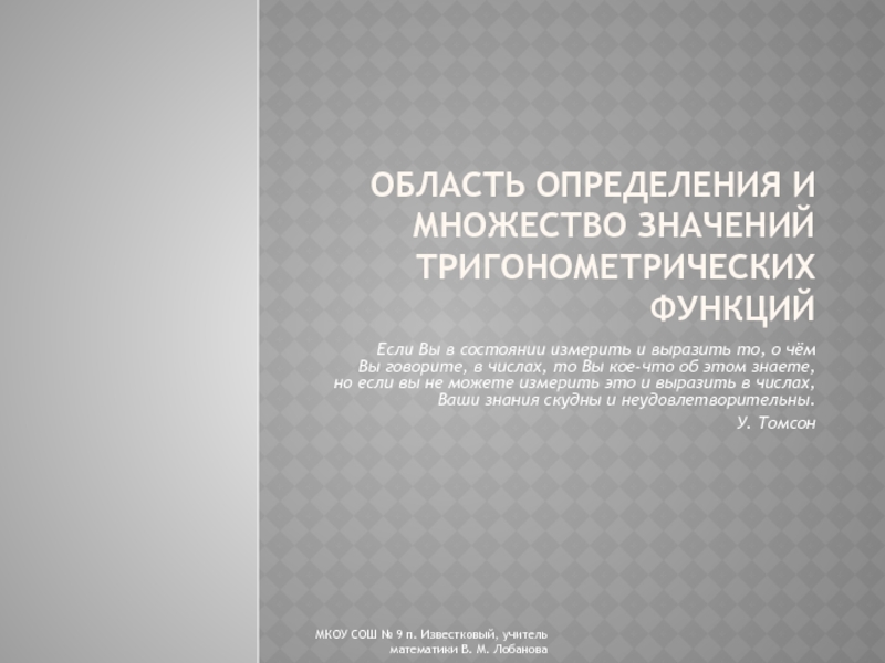 МКОУ СОШ № 9 п. Известковый, учитель математики В. М. Лобанова