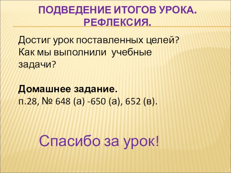 Слайд 13ПОДВЕДЕНИЕ ИТОГОВ УРОКА. РЕФЛЕКСИЯ.