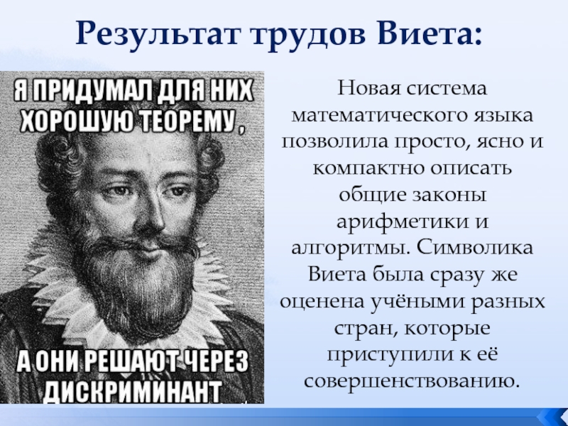 Результат трудов Виета: