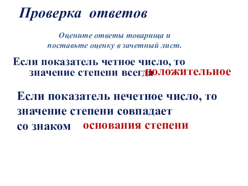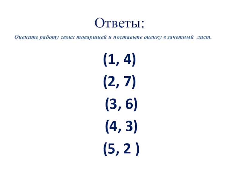 Оцените ответы товарища и поставьте оценку в зачетный лист.
