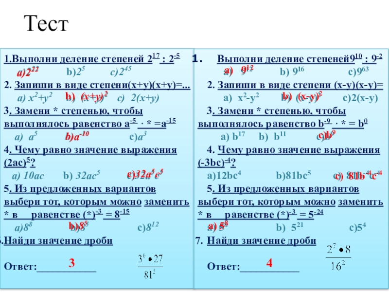 3. Замени * степенью, чтобы выполнялось равенство b-9 · * = b0