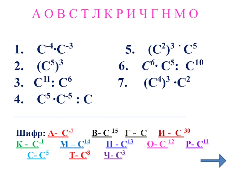 1. С-4∙С-3 5. (С2)3 ∙ С5