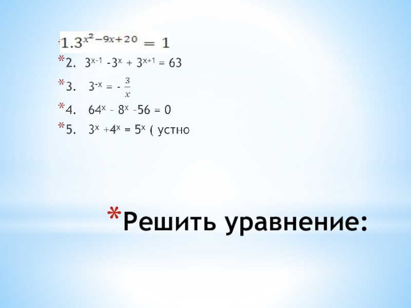 2.а) является ли показательным уравнение  ? б) является ли показательным уравнение  ?
