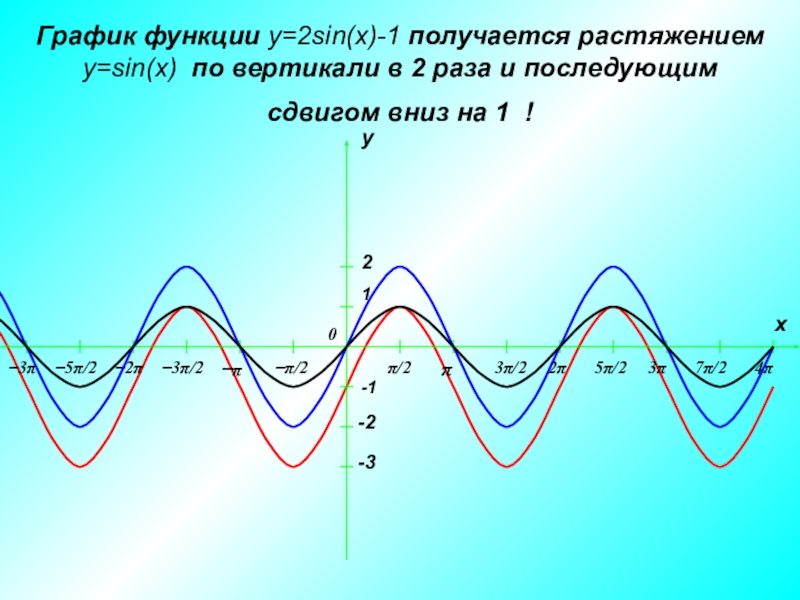 Слайд 8График функции y=2sin(x)-1 получается растяжением y=sin(x) по вертикали в 2 раза
