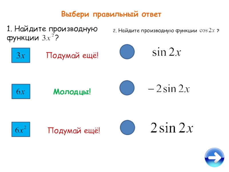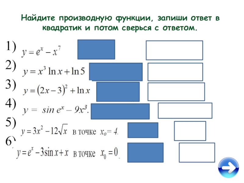 Найдите производную функции, запиши ответ в квадратик и потом сверься с ответом.