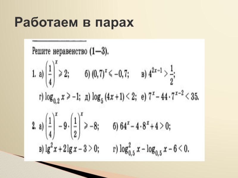 Слайд 15Решение показательных и логарифмических уравнений и неравенств