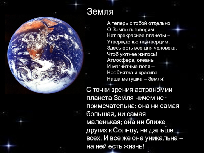 С точки зрения астрономии планета Земля ничем не примечательна: она ни