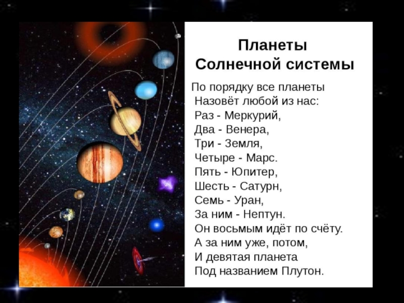 Планеты солнечной системы очень разные: они различаются по размерам, по удаленности от Солнца, по условиям, которые существуют на их поверхности. У каждой из планет своя орбита. Орбита-это путь, по которому планета движется вокруг Солнца. Планета не может сойти со своей орбиты потому что Солнце крепко держит около себя каждую из них.