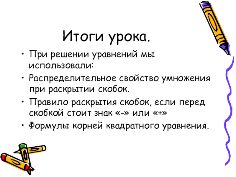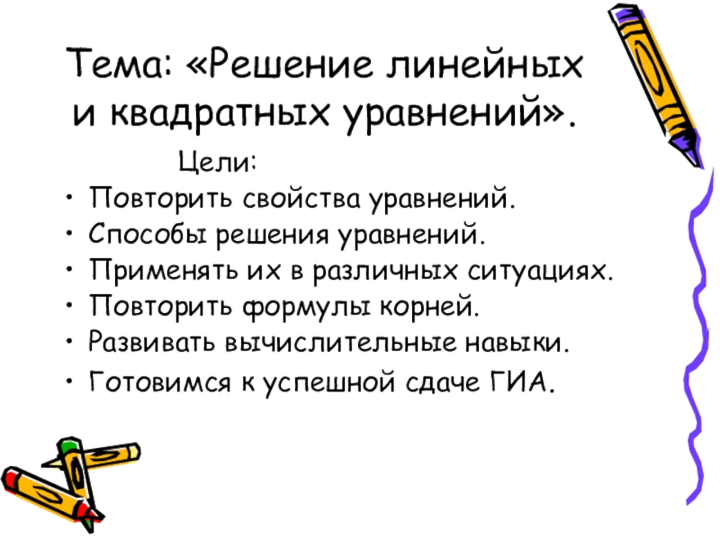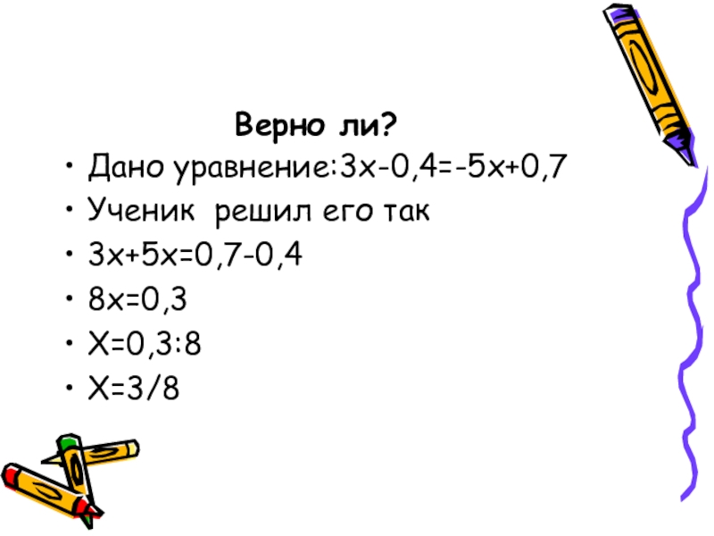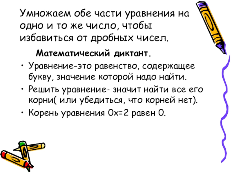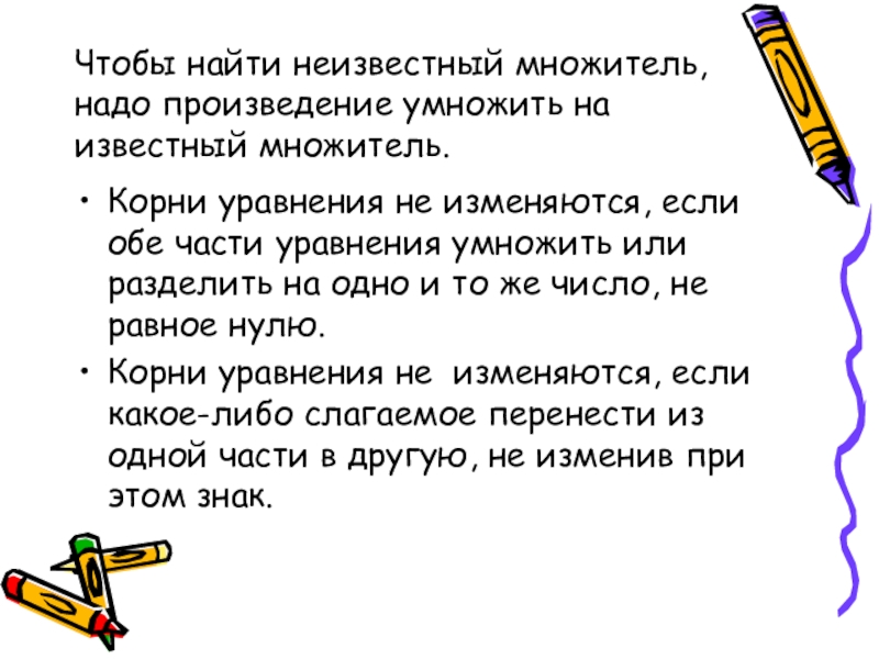 Решить уравнение- значит найти все его корни( или убедиться, что корней нет).