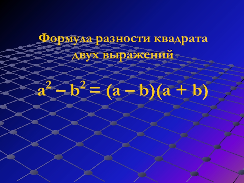 Формула разности квадрата двух выражений а2 – b2 = (а – b)(а + b)