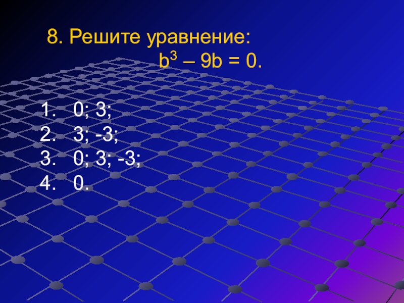8. Решите уравнение:                    b3 – 9b = 0.  0;