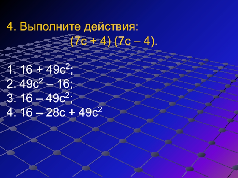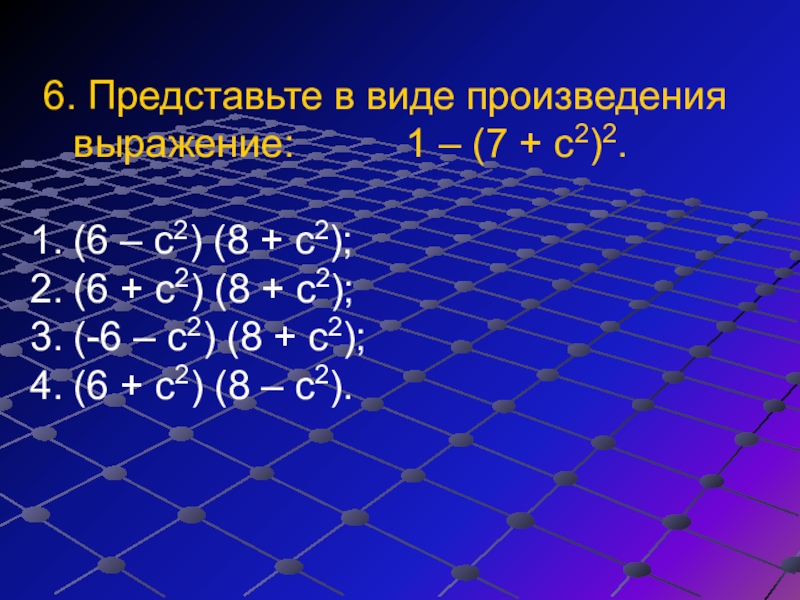 6. Представьте в виде произведения выражение:     1 – (7 + с2)2. (6 –