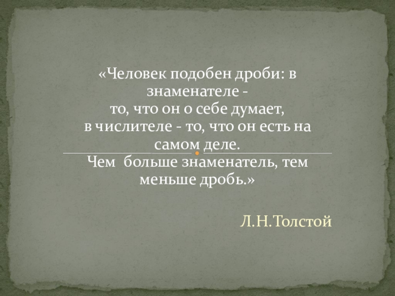 то, что он о себе думает, в числителе - то, что он есть на самом деле. Чем больше знаменатель, тем меньше дробь.»