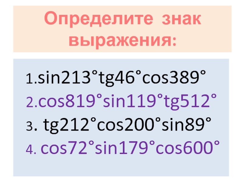 Определите знак выражения: