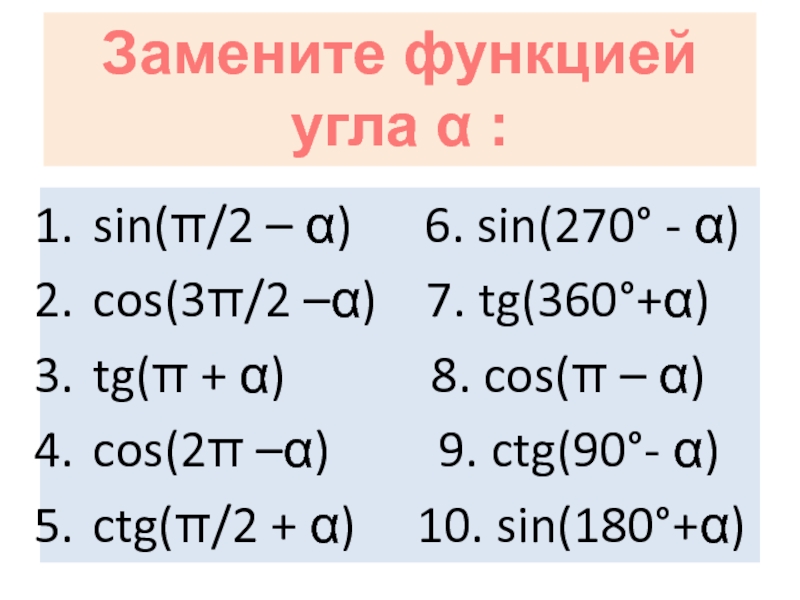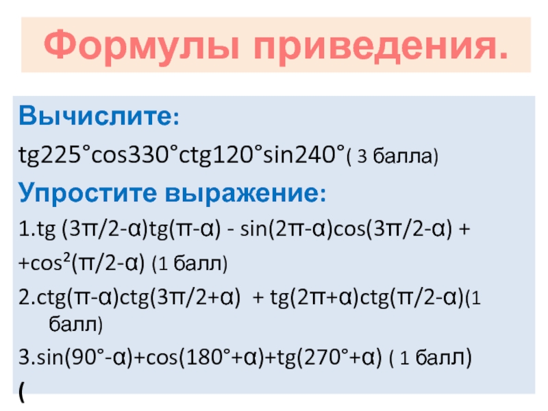 Формулы приведения.
