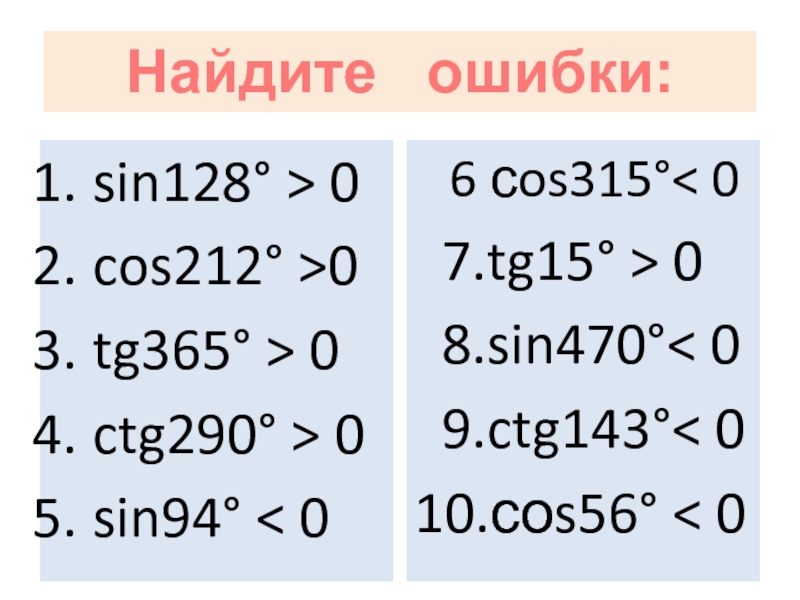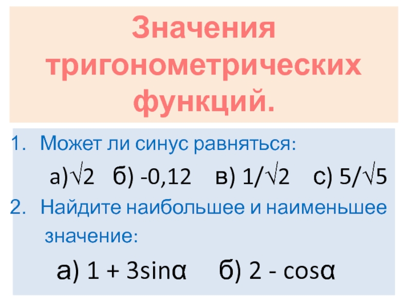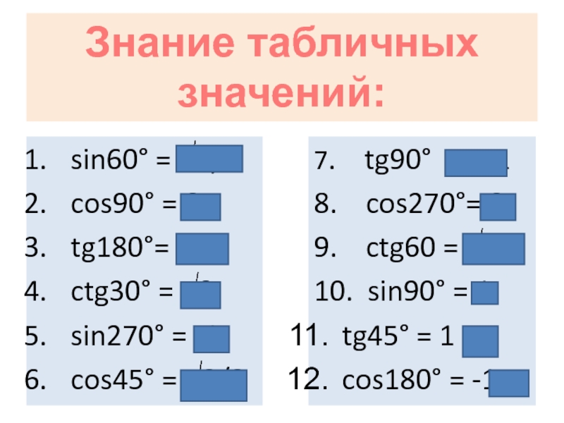 Значения тригонометрических функций.