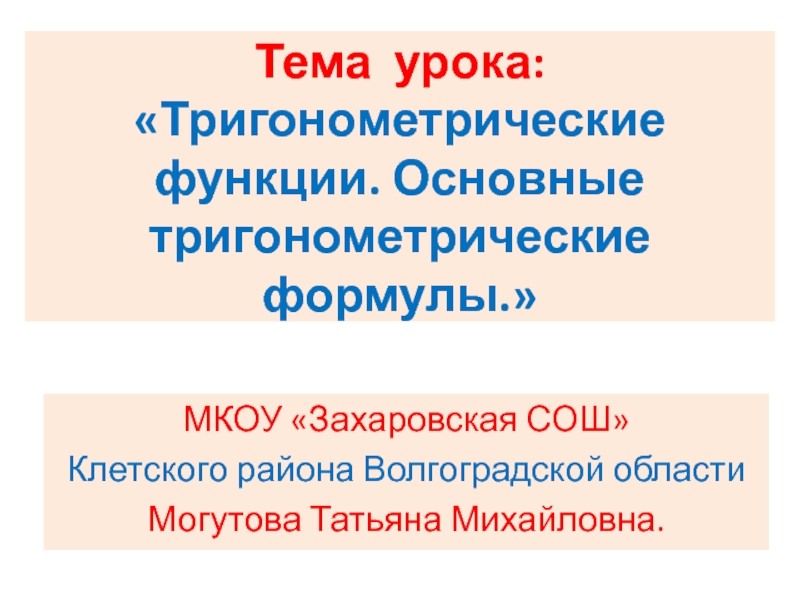 Основные тригонометрические формулы.