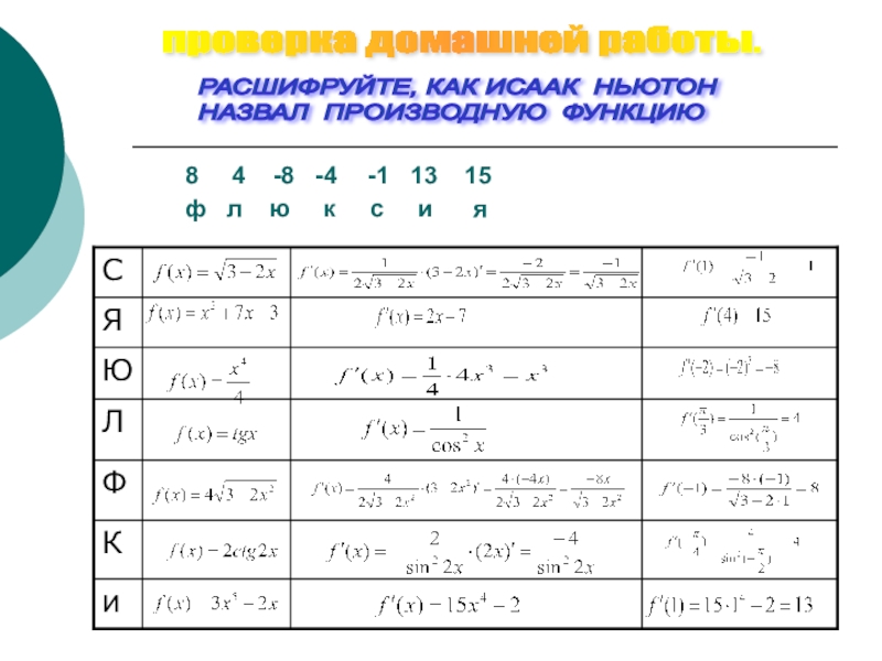 НАЗВАЛ ПРОИЗВОДНУЮ ФУНКЦИЮ