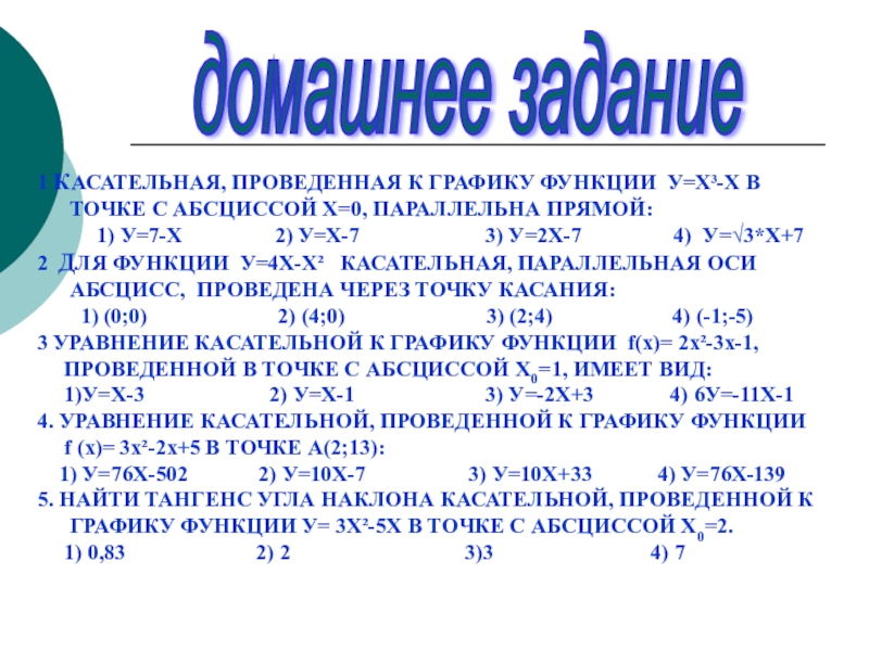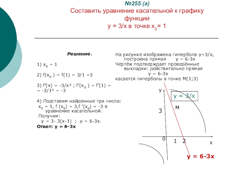 x0 = 1, f (x0) = 3,f ’(x0) = -3 в уравнение касательной.