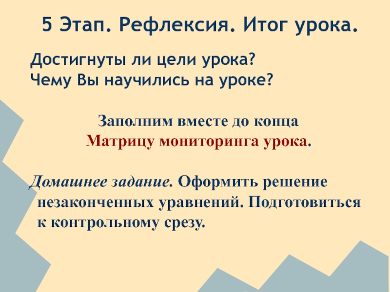 5 Этап. Рефлексия. Итог урока.