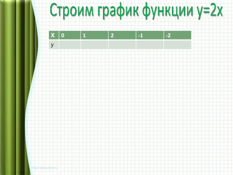 Построить график функции          у=0,5х 1) заполняем таблицу2)Строим