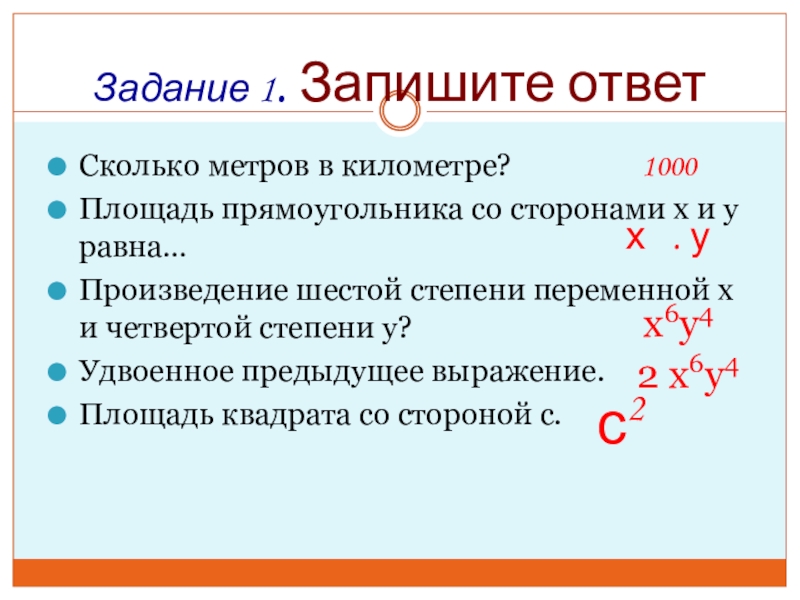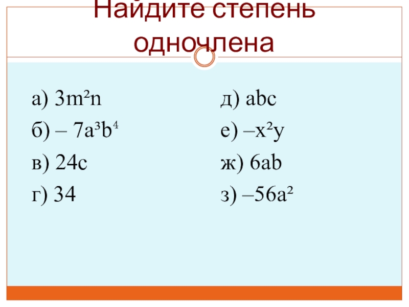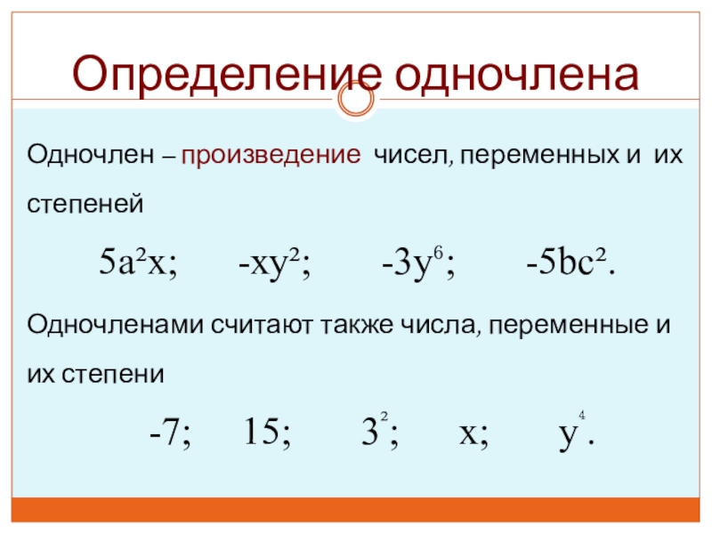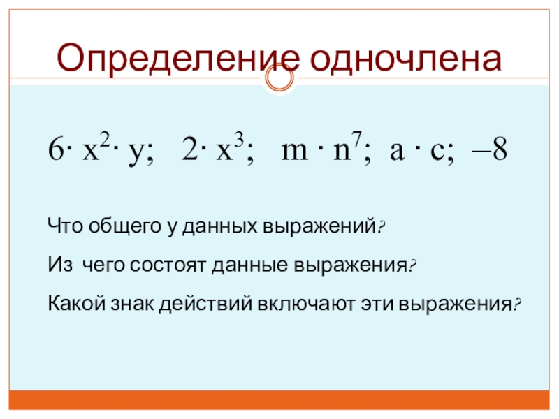6∙ x2∙ у; 2∙ x3; m ∙ n7; a ∙ c; –8