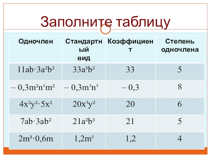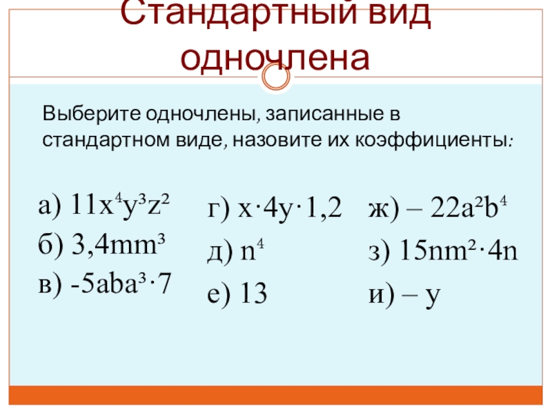 Выберите одночлены, записанные в стандартном виде, назовите их коэффициенты: