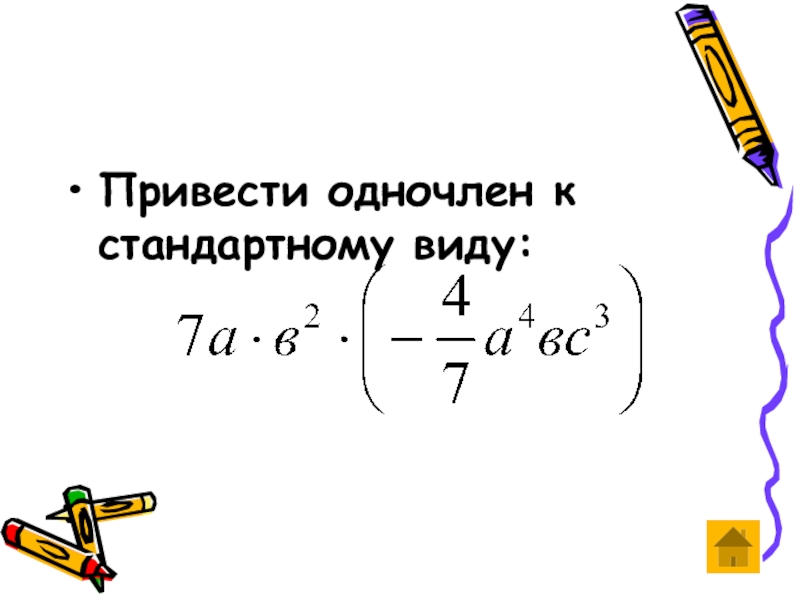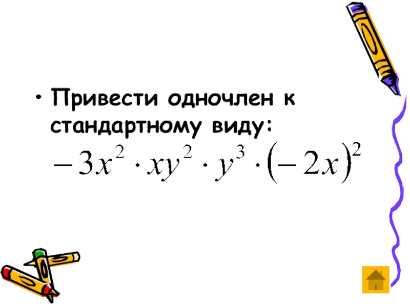 Слайд 13Привести одночлен к стандартному виду: