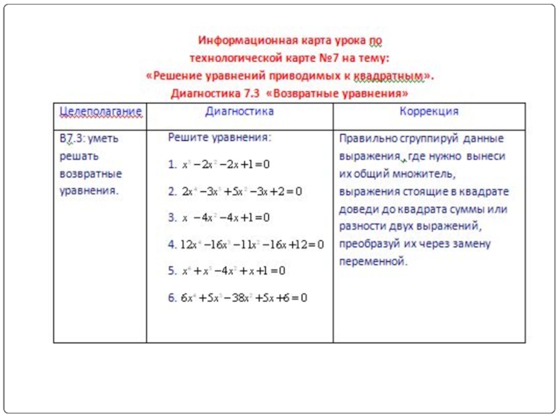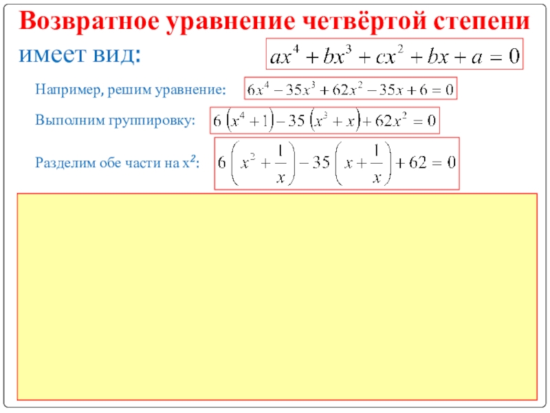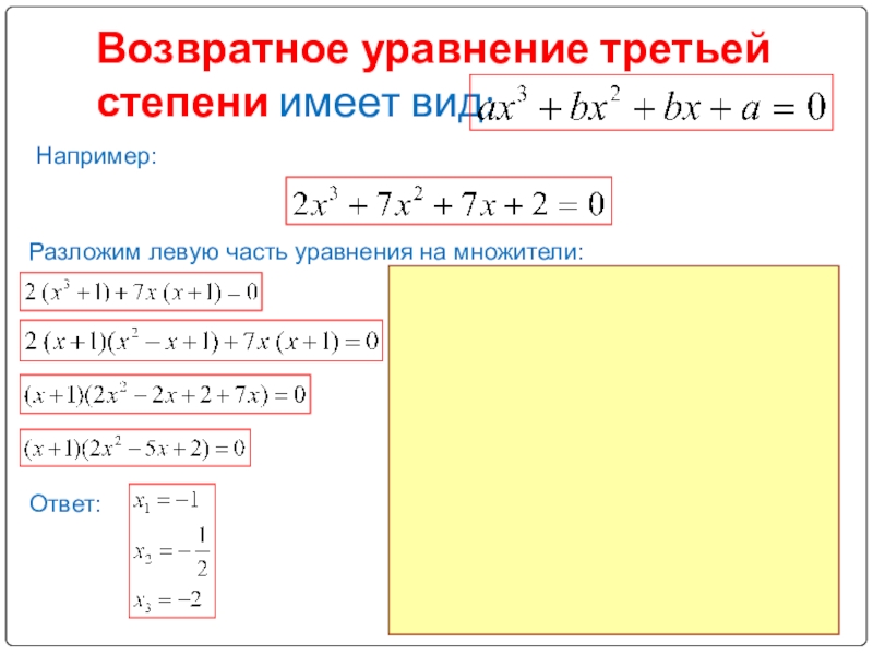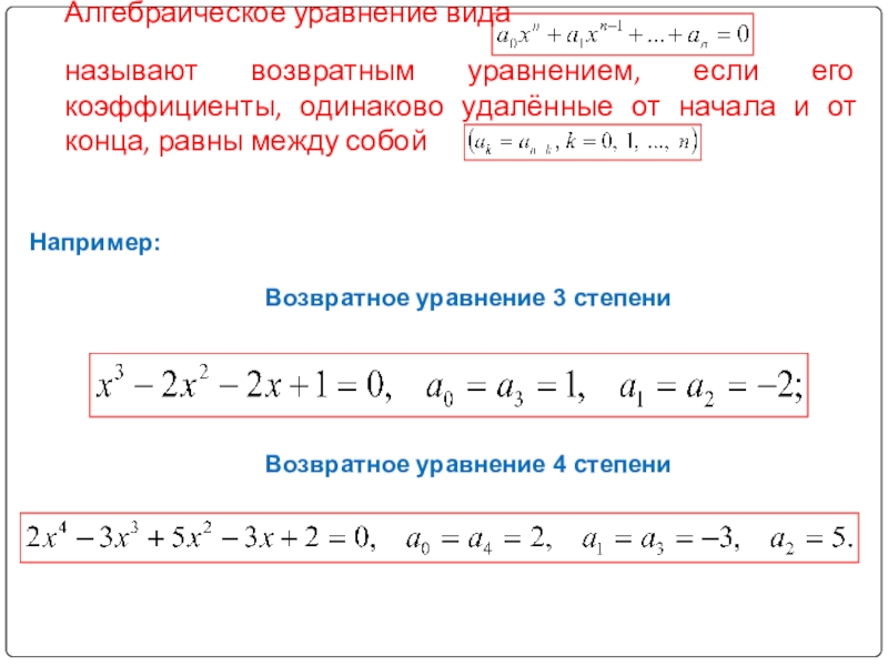 называют возвратным уравнением, если его коэффициенты, одинаково удалённые от начала и от конца, равны между собой
