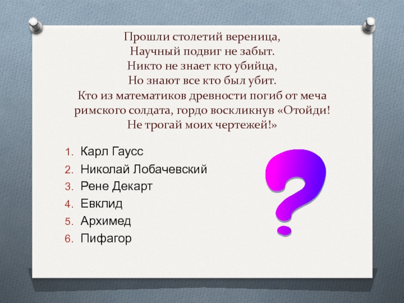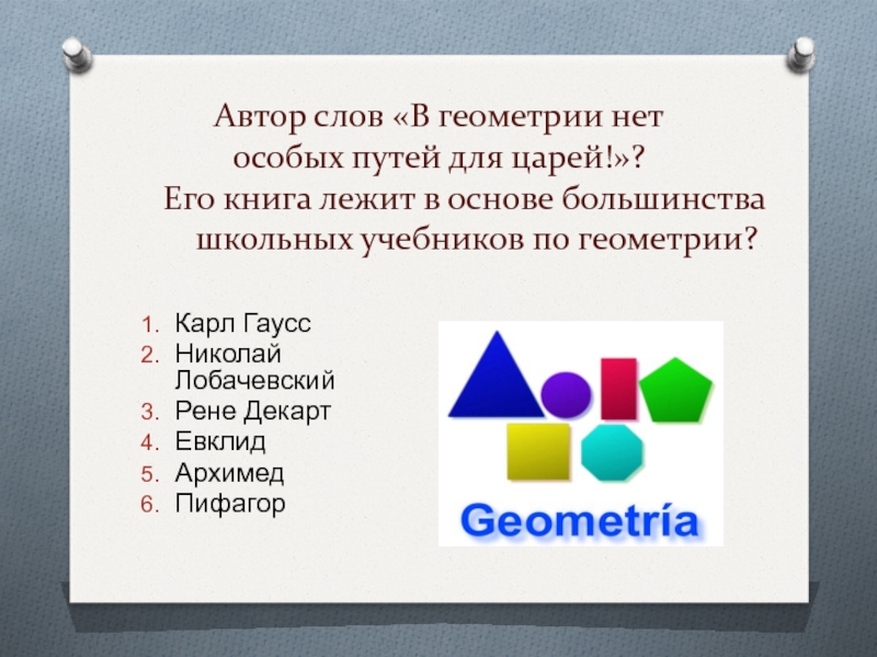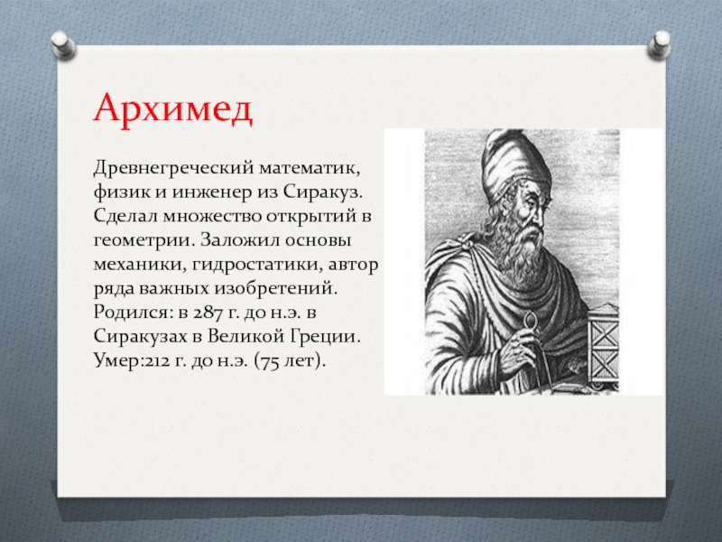 геометрии. Заложил основы механики, гидростатики, автор ряда важных изобретений.