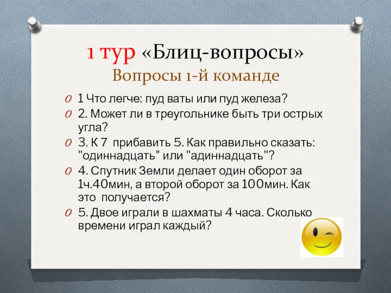 Слайд 123 тур «Кто быстро и правильно ответит»