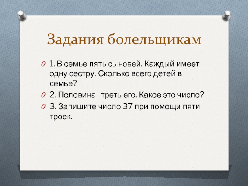 1. В семье пять сыновей. Каждый имеет одну сестру. Сколько
