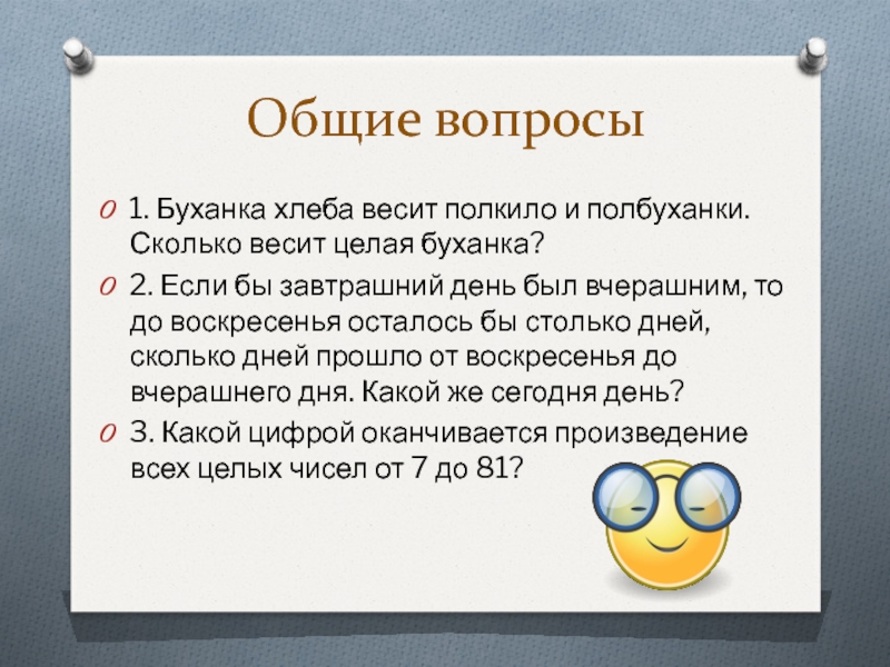 1. Буханка хлеба весит полкило и полбуханки. Сколько весит целая