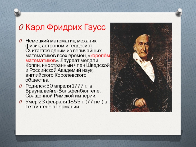 из величайших математиков всех времён, «королём математиков». Лауреат медали Копли, иностранный член Шведской и Российской Академий наук, английского Королевского общества.