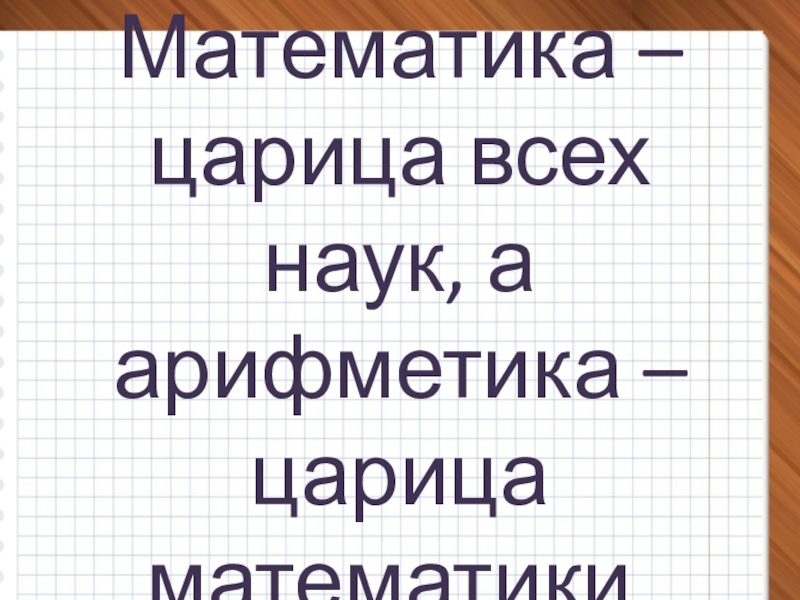 Слайд 6Математика – царица всех наук, а арифметика – царица математики.
