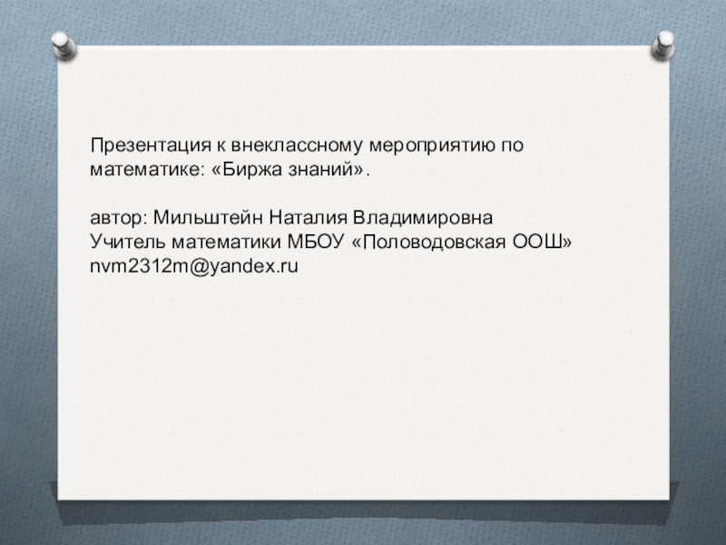 Это сайт презентаций, где можно хранить и обмениваться своими презентациями, докладами, проектами, шаблонами в формате PowerPoint с другими пользователями. Мы помогаем школьникам, студентам, учителям, преподавателям хранить и обмениваться учебными материалами.