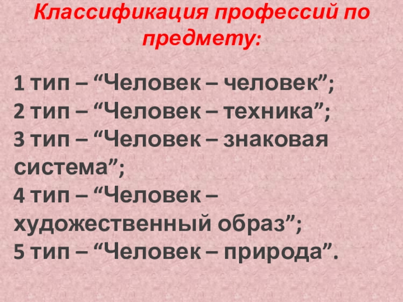 Слайд 7Классификация профессий по предмету: