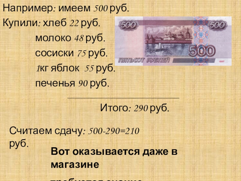 Слайд 17Например: имеем 500 руб.