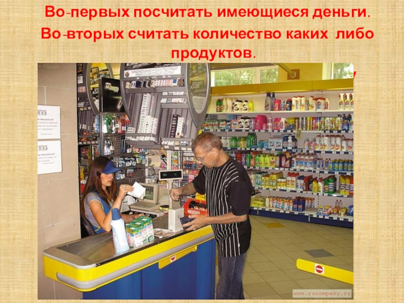 Слайд 20 Во-первых посчитать имеющиеся деньги.