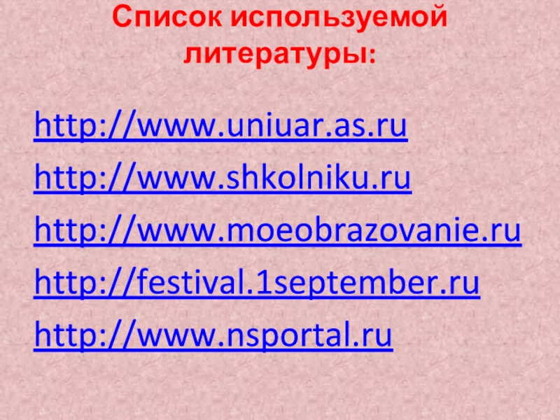 Слайд 47Список используемой литературы:
