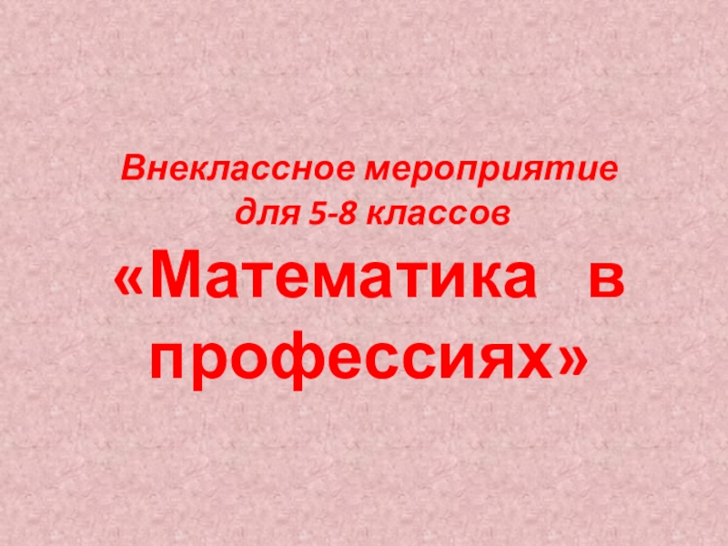 для 5-8 классов «Математика в профессиях»