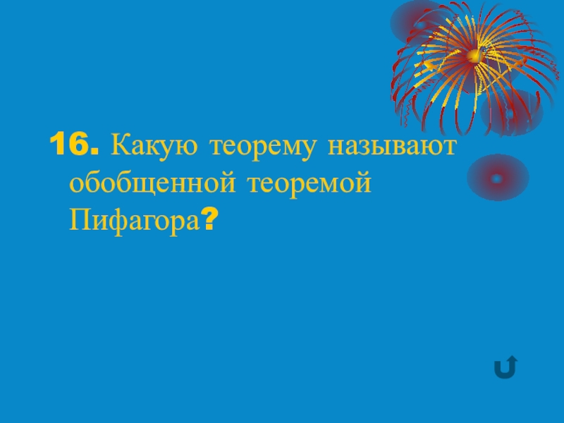 4 вопросКакая теорема применима к египетскому треугольнику?ПифагораФалесаВиетаФерма