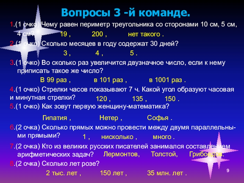 2.(1 очко) Сколько месяцев в году содержат 30 дней?